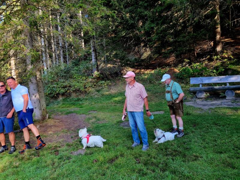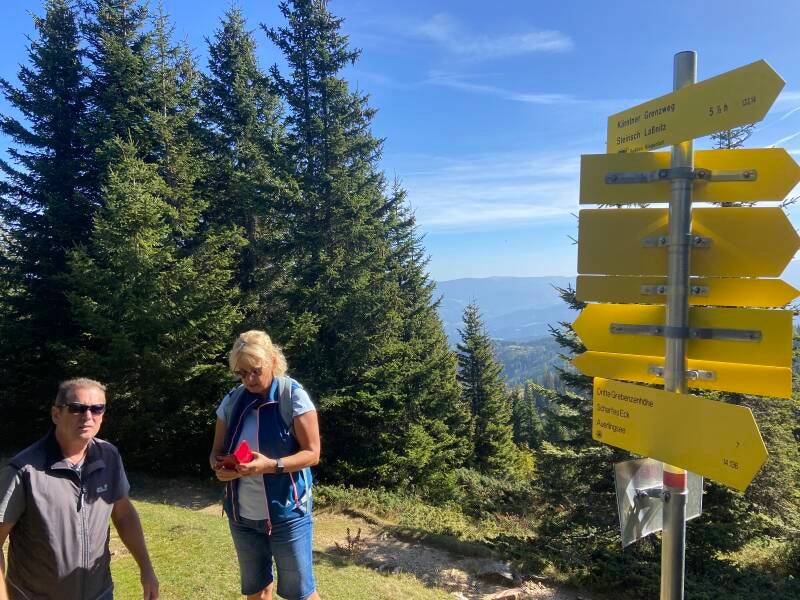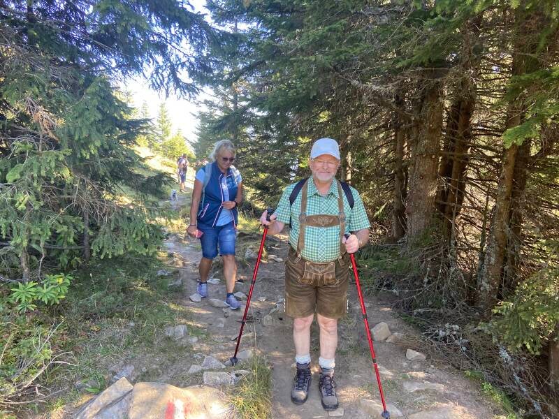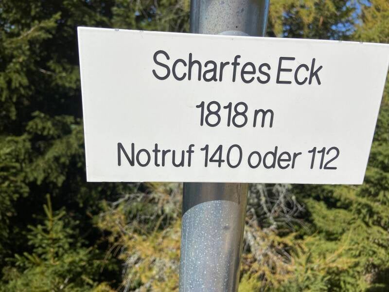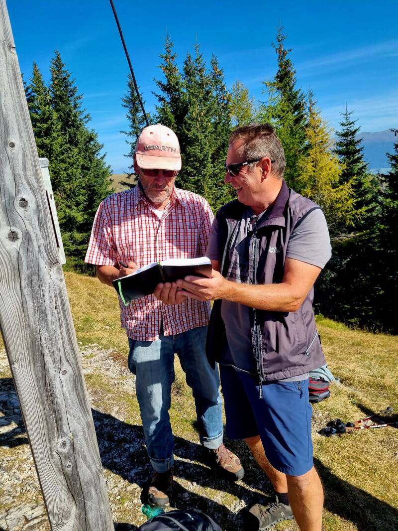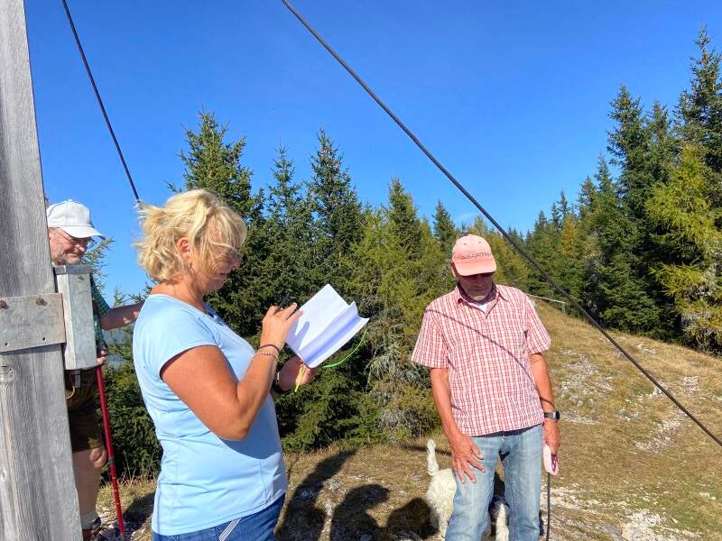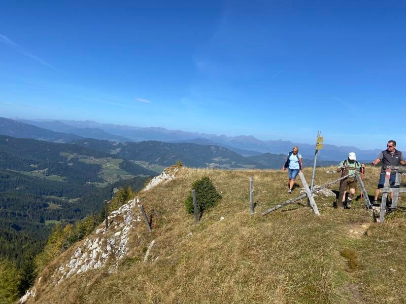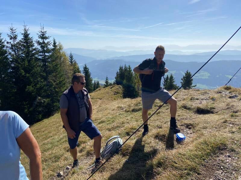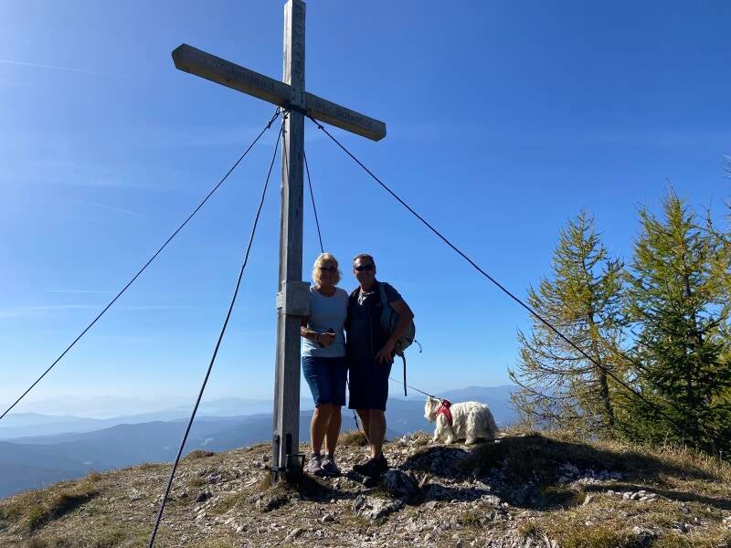 Gipfelkreuz „Scharfes Eck“ mit Gabi, Pia, Horst, Uwe, Raimund, Christian und Erich