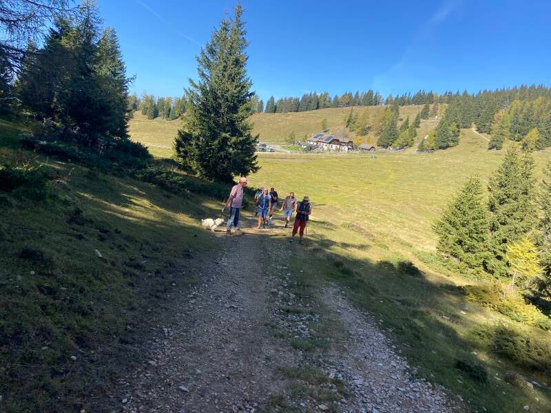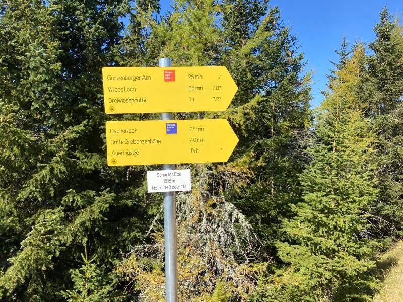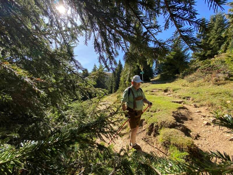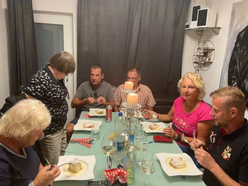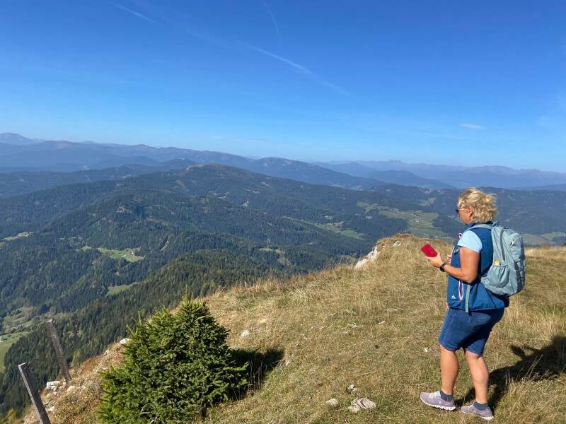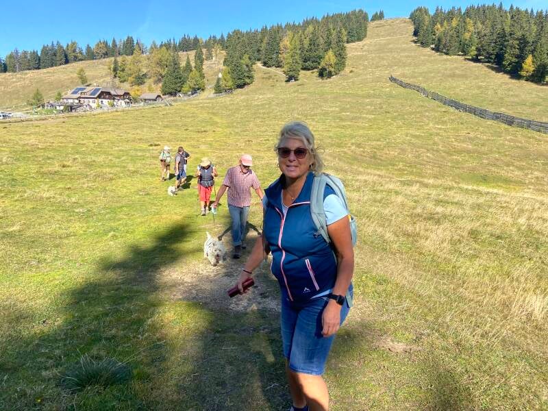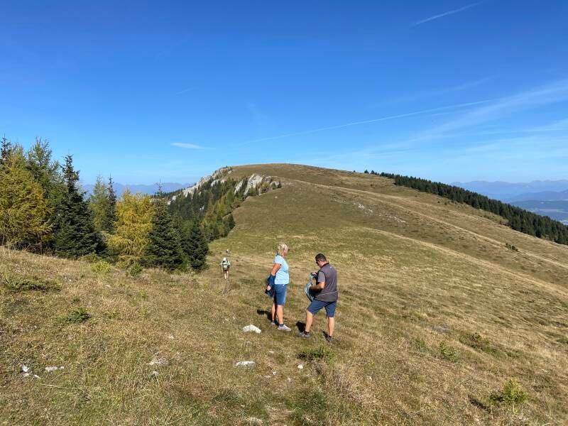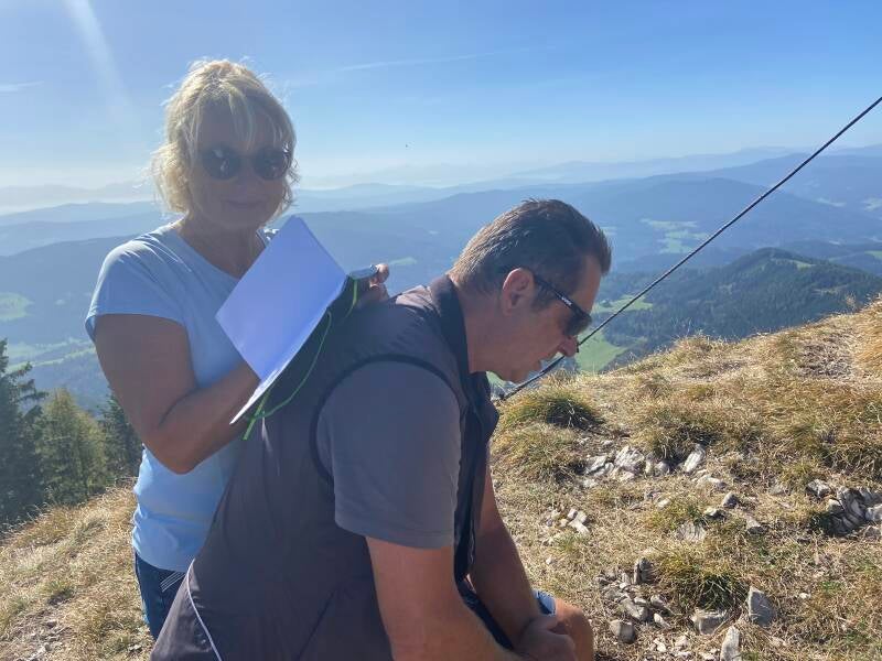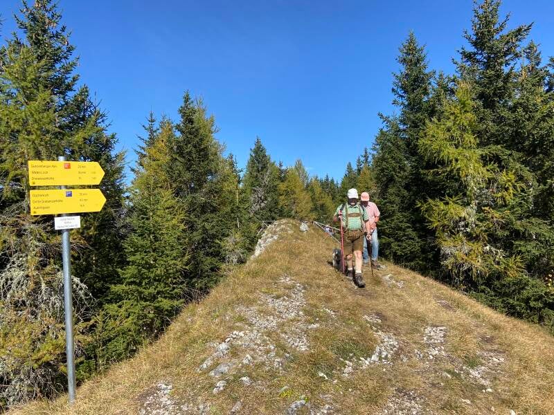 Gipfelkreuz „Scharfes Eck“ mit Gabi, Pia, Horst, Uwe, Raimund, Christian und Erich